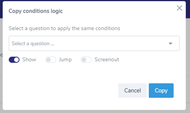 Please note that this functionality currently applies only to question-level conditions. Copying answer-level conditions is not supported.