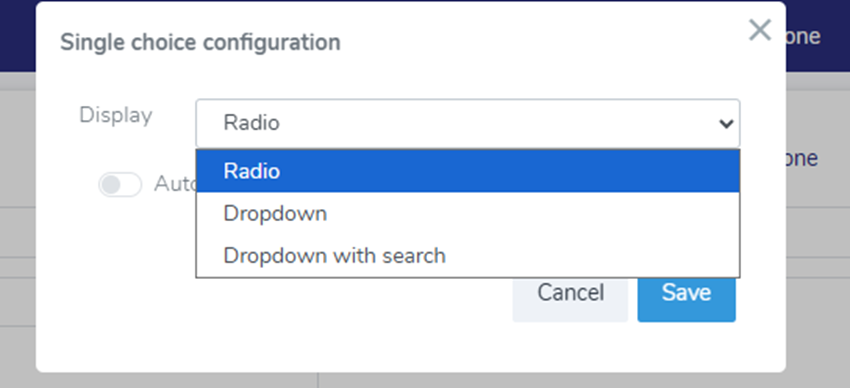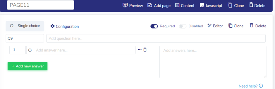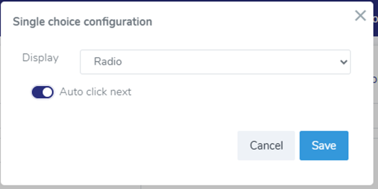 Once the “Single choice” question type is selected, a “Configuration” setting will be seen.