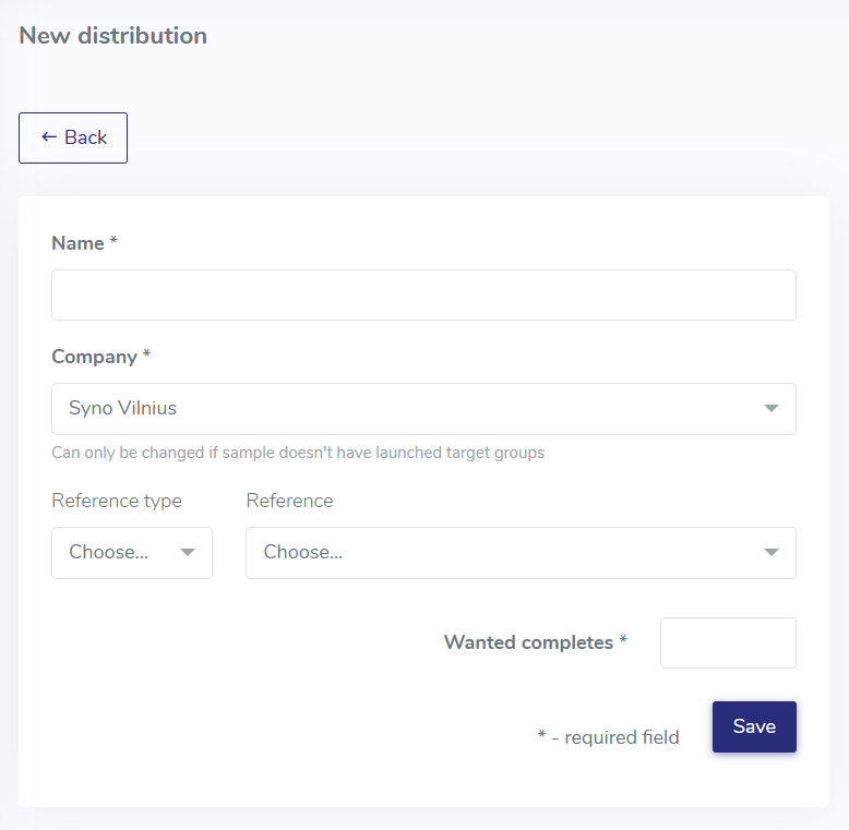 Reference type: Choose project or evaluation if it should be connected to this distribution (optional).